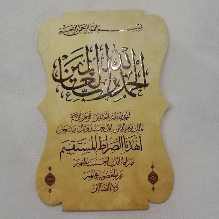 استند رومیزی قرآنی زیبای (سوره حمد)با کاغذ ایندربورد و روکش اکلیلی