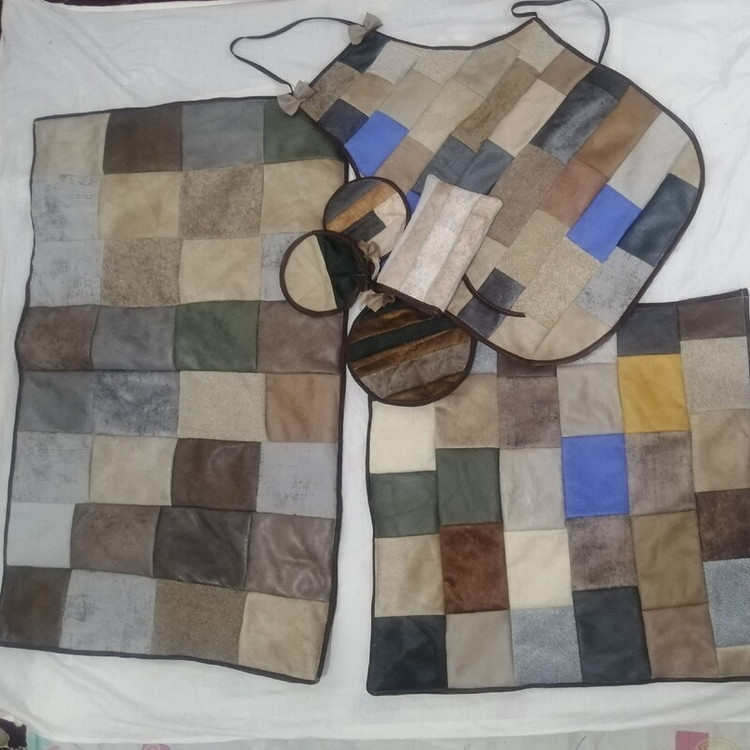 ست وسرویس شش پارچه آشپزخانه جنس نانو مخمل و طرح چرم با نایلون زیری ضخیم کیفیت تضمینی