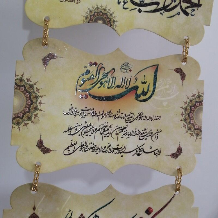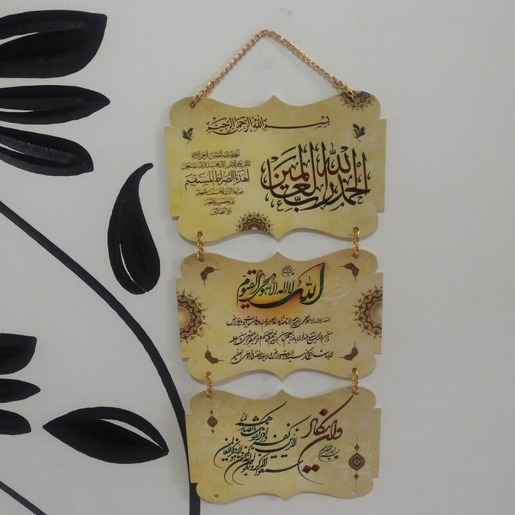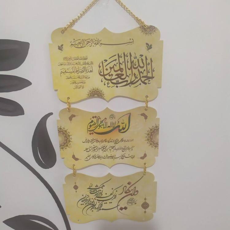 آویز زینتی و قرآنی با کاغذ ایندربورد و اکلیلی و زنجیر طلایی رنگ